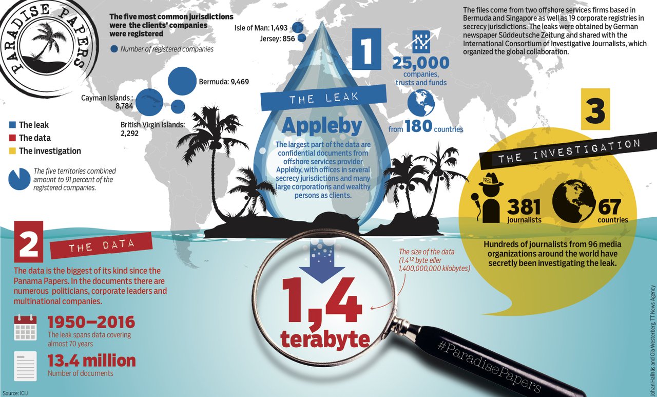 Paradísarskjölin er stærsti gagnaleki síðan Panamaskjölin voru birt snemma á síðasta ári. Gögnin bárust þýska dagblaðinu Suddeutsche Zeitung og deildi þeim með alþjóðasamtökum rannsóknarblaðamanna, ICIJ, sem skipulagði úrvinnslu gagnanna með rúmlega 380 blaðamönnum í 67 löndum. Allar fréttir úr skjölunum eru merktar með myllumerkinu #ParadisePapers.